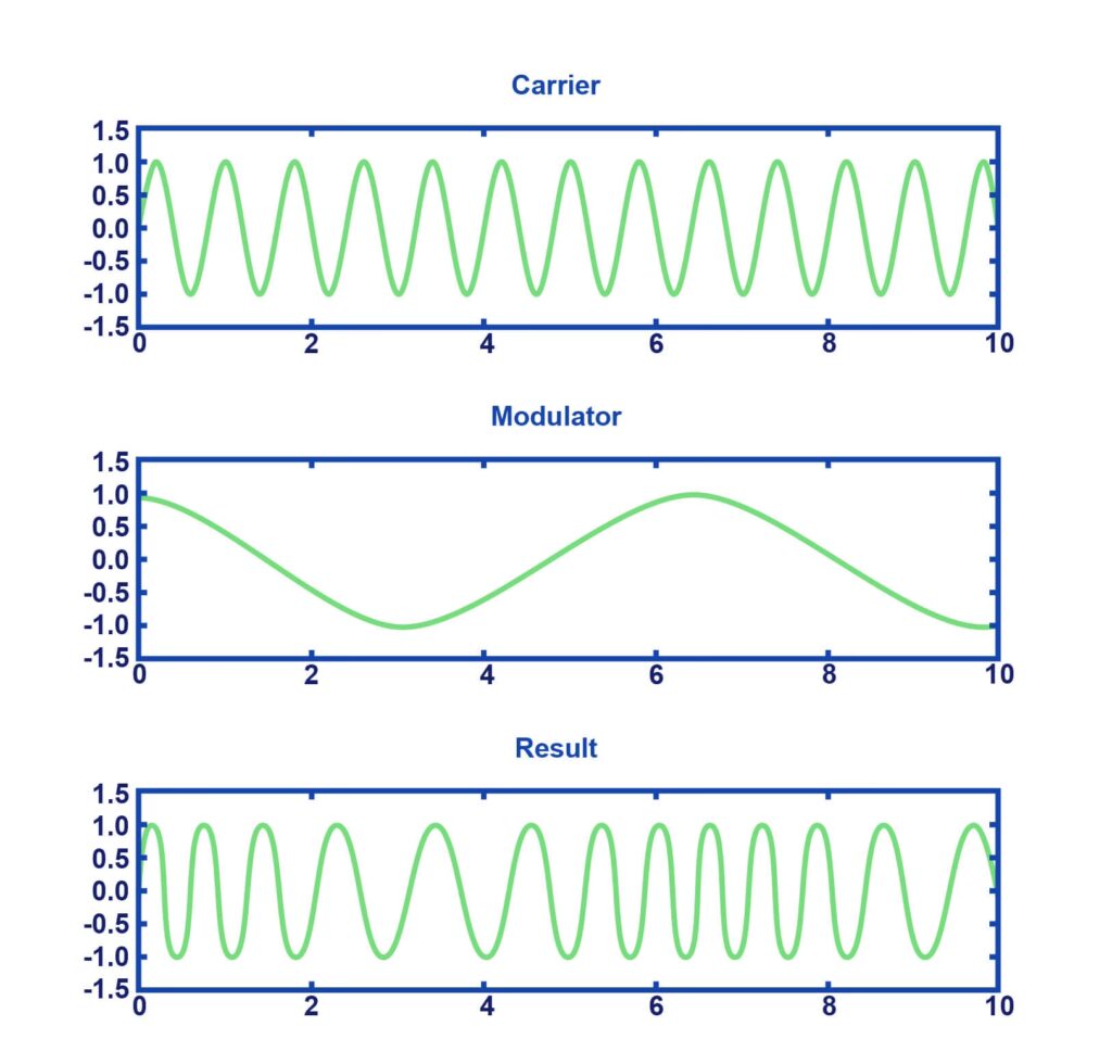 A diferencia de la síntesis sustractiva, donde se parte de una forma de onda rica en armónicos (como una diente de sierra) y se eliminan frecuencias mediante filtros, la síntesis FM construye el sonido añadiendo complejidad armónica. Lo logra modulando la frecuencia de una forma de onda con otra. Esta interacción, aunque conceptualmente simple, tiene un impacto profundo en el espectro armónico resultante, permitiendo crear sonidos metálicos, de campanas, pianos eléctricos, bajos contundentes y texturas evolutivas que son difíciles de replicar con otras técnicas.