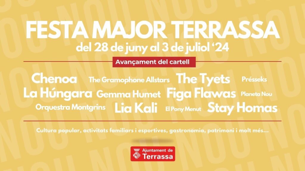 La programación musical de la Fiesta Mayor de Terrassa 2024 llega cargada de nombres que resuenan en el panorama musical actual y con trayectorias reconocidas. El Ayuntamiento de Terrassa ha apostado, un año más, por la diversidad de estilos y por dar visibilidad al talento femenino y a las formaciones locales.
