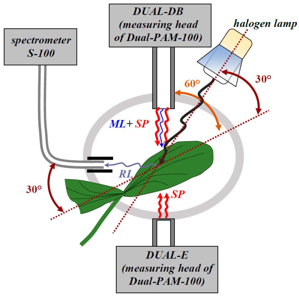 - Medición de Fo: Se aplica un pulso de luz de medición débil y modulada para determinar la fluorescencia mínima (Fo).
